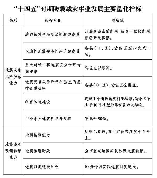 泰安市防震減災事業發展第十四個五年規劃(2021-2025年)