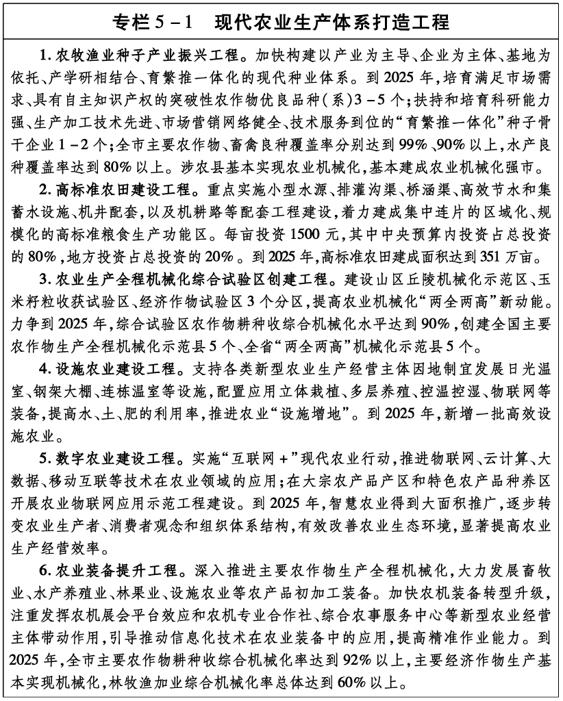 (八)構建現代農業支撐體系,推動農業農村高質高效發展