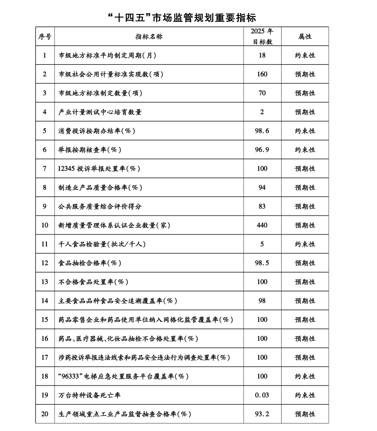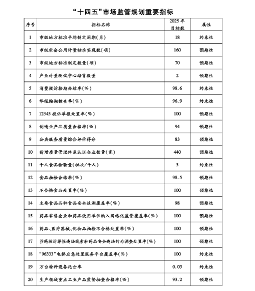 “十四五”市場監(jiān)管規(guī)劃重要指標